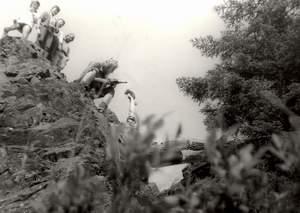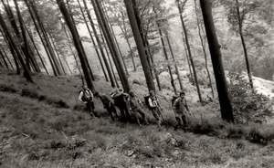 Zu diesem Zeitpunkt war es den teilnehmenden Alpinisten noch nicht bewußt, welch epochale Neuerung sie in Bälde erwarten sollte. Bekannt war lediglich das Expeditionsziel. Der damals noch unbewaldete Monte Ferrostona. Es sei an dieser Stelle vermerkt, daß der Aufstieg ein VOLLER Erfolg war, obwohl man diesmal darauf verzichtet hatte ein Gipfelkreuz zu errichten. |