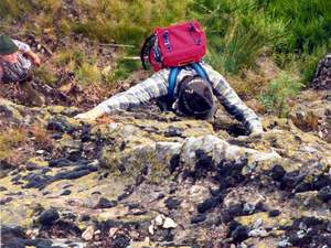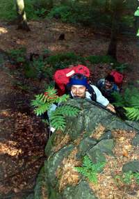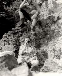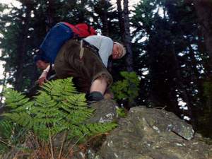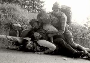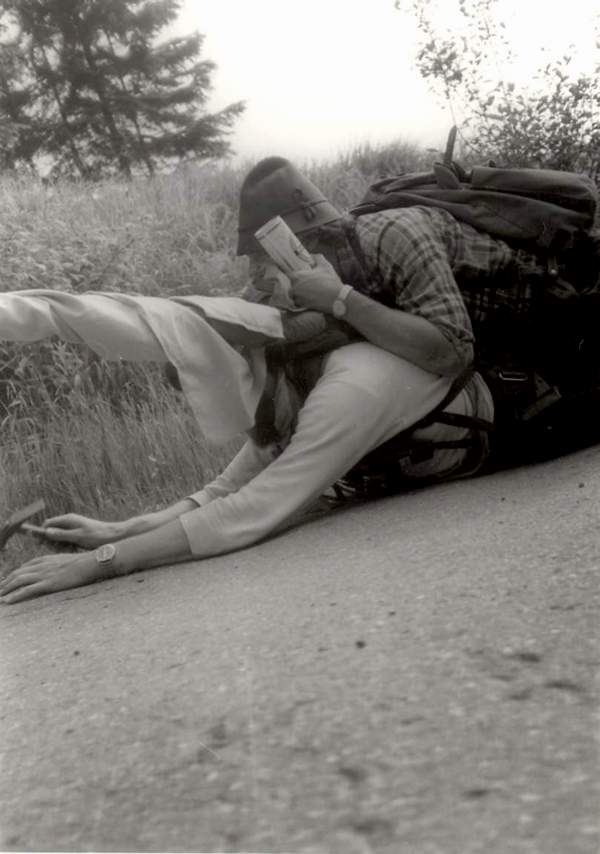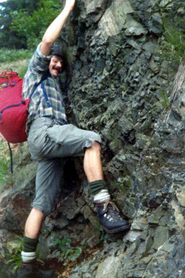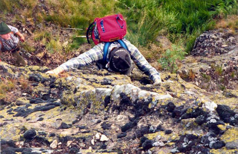 Beim Abstieg vom Berg kam es während der Überschreitung der Fish - Creek Hochebene zu unerwarteten Komplikationen. Das Team hatte sich verstiegen!! Als letzte Möglichkeit um den rettenden Postman - Trail zu erreichen, den sicheren Weg zu "Kalles Lodge", kam hier zum ersten Mal im Harzer Alpinismus Krato's einzigartige Technik des Teerstraßen - Extremkletterns zum Einsatz.