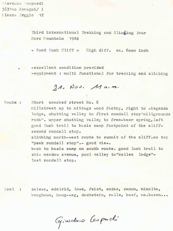 Nach den bahnbrechenden Erfahrungen der ersten beiden Expeditionen, hatte es sich in Fachkreisen großer Outdoor - Bekleidungs - Hersteller herumgesprochen, daß es im Harz eine kleine aber feine Gruppe äußerst belastbarer Alpinisten gab, die man zur Erprobung von Funktionsbekleidung einsetzen könnte. Ein solcher Feldversuch erfordert natürlich Witterungsbedingungen, wie sie nur der Spätherbst im Hochharz hervorbringt. Somit war der Termin für eine neue Expedition eingeschränkt. Man einigte sich auf einen der letzten frei - feierbaren Buß- und Bettage des letzten Jahrtausends. Dieser fiel zufällig auf den 21. November 1984. Eingeweihte werden sofort erkennen, daß es sich bei diesem Datum um den 29 sten Geburtstag eines der ehrenwerten Mitglieder handelt.