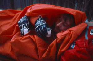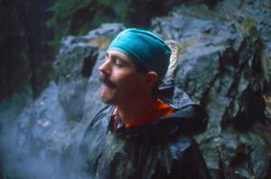Rudi, hier noch im Vorserienmodell einer Outdoor- Jacke unbekannter Provenienz mit Einwegmembran. Nur nach innen.