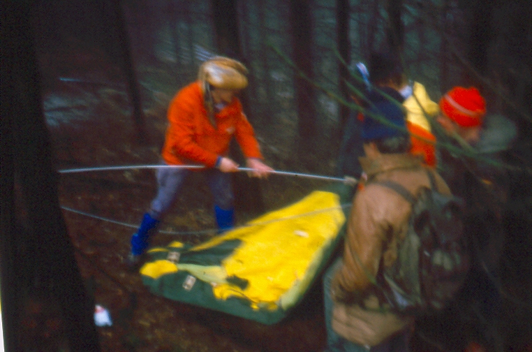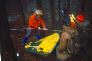 Der werte Besucher dieser Seite wird bemerken, daß wir uns noch in der Prä- GPS- Phase befinden. Aus diesem Grunde wurde noch mit handgezeichnetem Kartenmaterial und dem ausschließlich für diese Expedition entwickelten "Feistanten" gearbeitet. Auf einigen Bildern ist in verschiedenen Händen auch noch der "Lotrechte" zu sehen, welcher sich aber als zur Navigation völlig untauglich erwies und deshalb auf weiteren Expeditionen auch nicht wieder mitgeführt wurde. Auf das Erlernen der Orientierungstechniken durch die Mitglieder, wird im Verlaufe der Dokumentierung noch eingegangen. Auch auf diesem Gebiet konnte das HMET richtungsweisende Erfolge erzielen. Diese sollten bei späteren Expeditionen ( auch ins Nachbarland ) von großem Nutzen sein.
