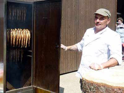 Golden leuchten die frisch geräucherten Forellen. |