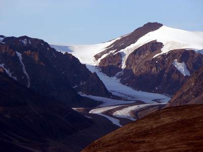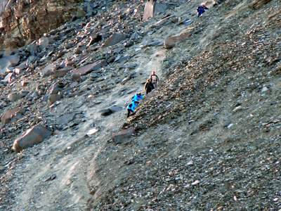 Auf dem brüchigen Moränenrücken. |