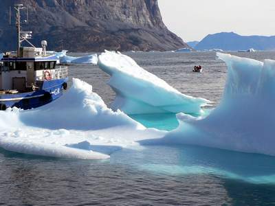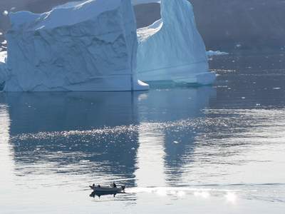 Eisberge vor Qeqertersuaq auf der Disko-Insel. |