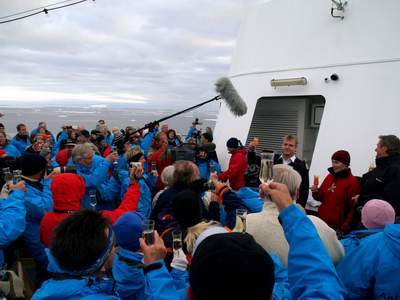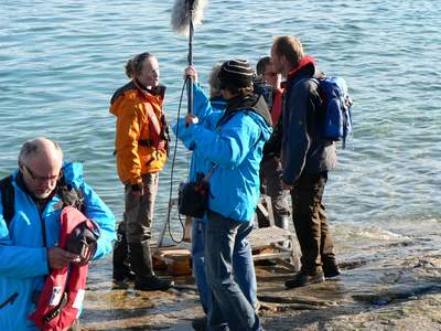 Unsere Expeditionsleiterin, die in Wernigerode Tourismus studiert hat, umzingelt vom NDR. |