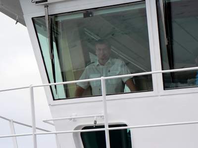 Der stolze Kapitän. So weit nördlich war er mit seinem Schiff noch nie. |